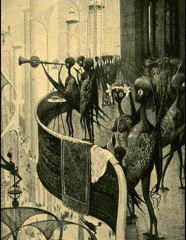 Drawing of aliens from another planet.