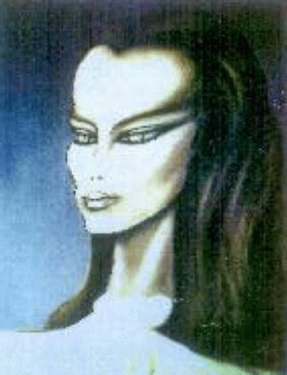 Channeled drawing of female alien from another planet.