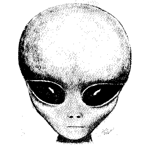 Black and white picture of grey alien.