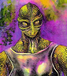 Drawing of a reptilian alien race living on a planet in the Orion area.