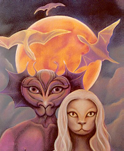 Drawing of lionlike alien race living on a planet circling the star Sirius A.