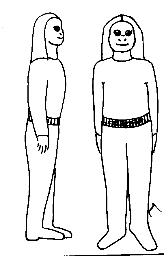 The Nibiruians. Drawing of people from 2 of the races present on the planet Nibiru.